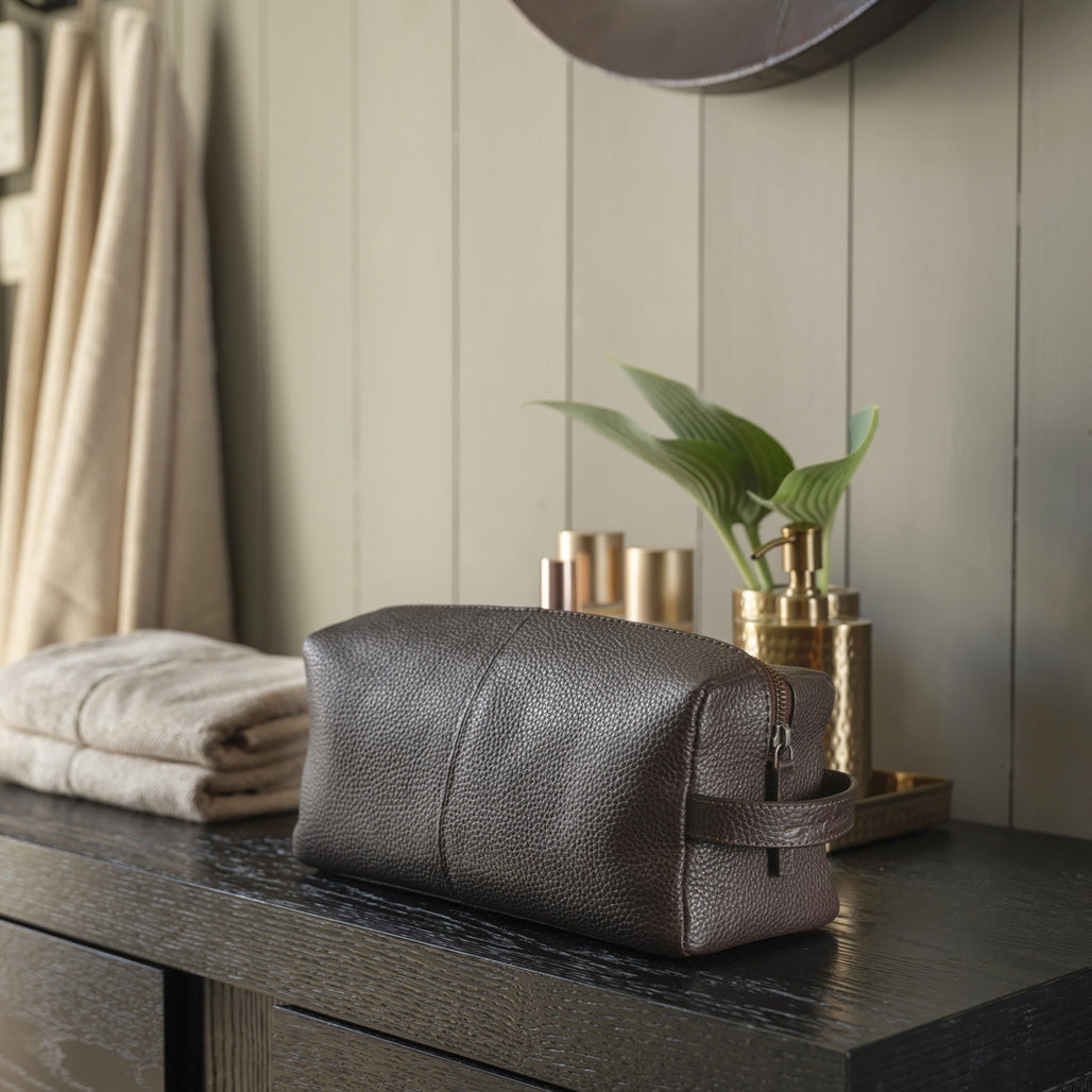 Eksklusiv toalettmappe i skinn fra Halvor Bakke. Med denne toalettmappen vil du alltid ha full oversikt over innholdet samtidig som du holder alt organisert på en smidig måte.