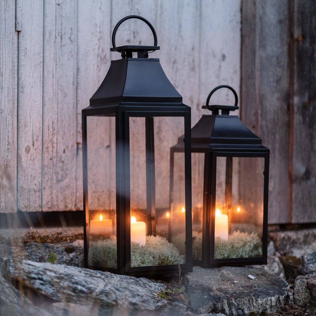 Lekker klassisk lanterne i sort stål, i to ulike høyder.