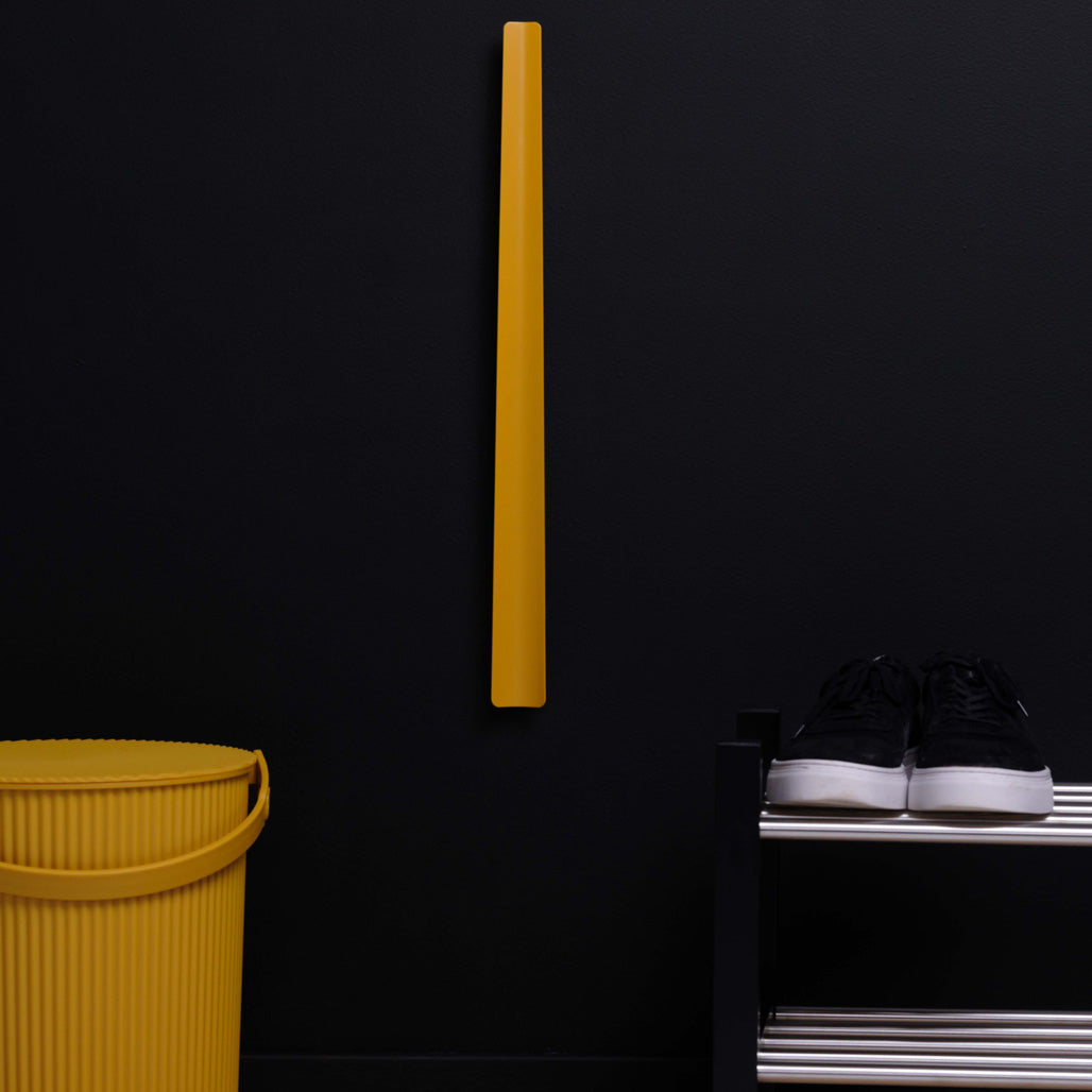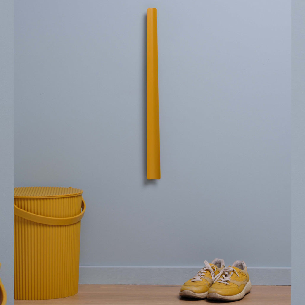 Et stilrent skohorn av metall i fargen matt varm gul.