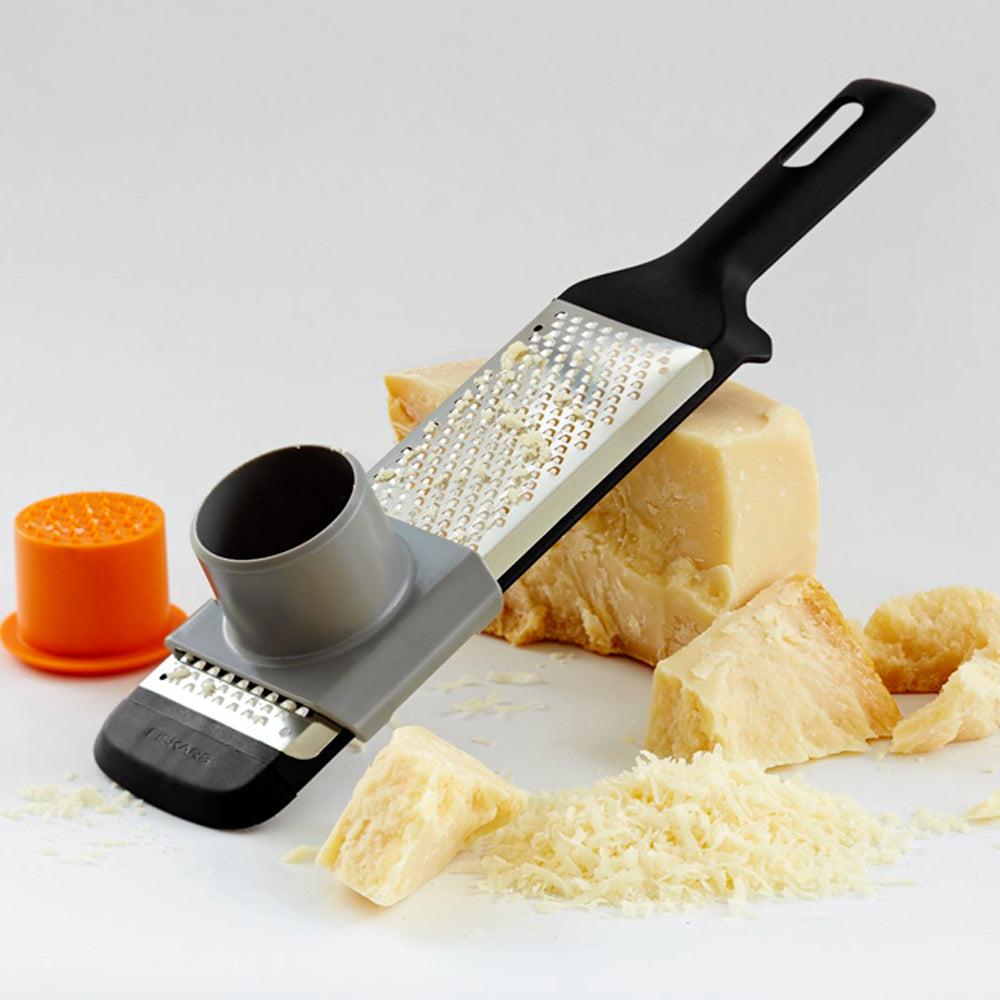 Fiskars Functional Form rivjern er perfekt til grønnsaker, frukt og ost og har en fingerbeskyttelse som gjør at du unngår å skade deg. Kan vaskes i oppvaskmaskin.