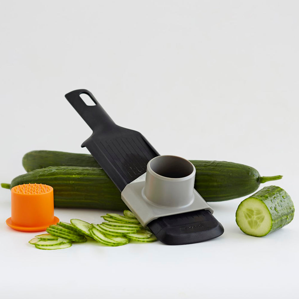 Inneholder Grønnsakskutter, grovt og fint rivjern: