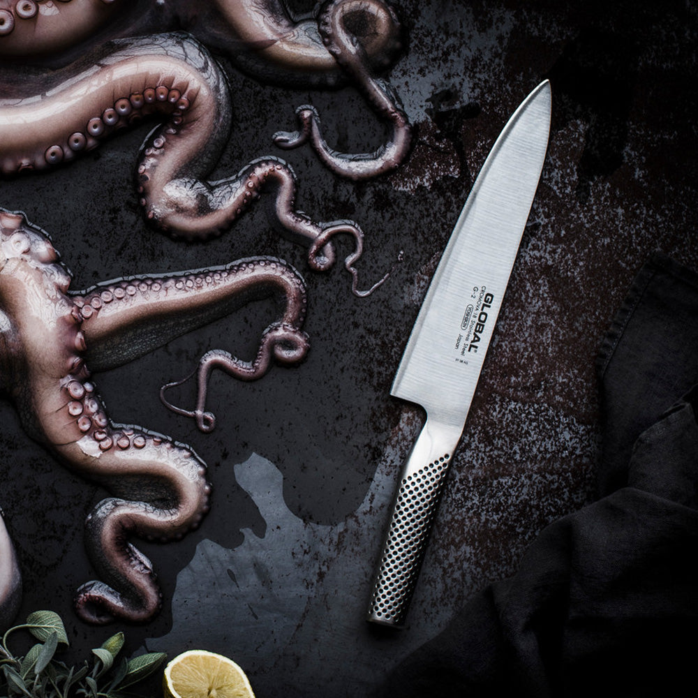 Kokkekniven er kokkens beste venn. Det er en allsidig knivmodell som du kan bruke til å skjære, hakke og terne de fleste råvarer. Vekten på knivbladet gjør det lettere å arbeide med store kjøttstykker og rotgrønnsaker. Denne kokkekniven første gang så dagens lys i 1985 og er uten tvil Globals mest populære kniv.