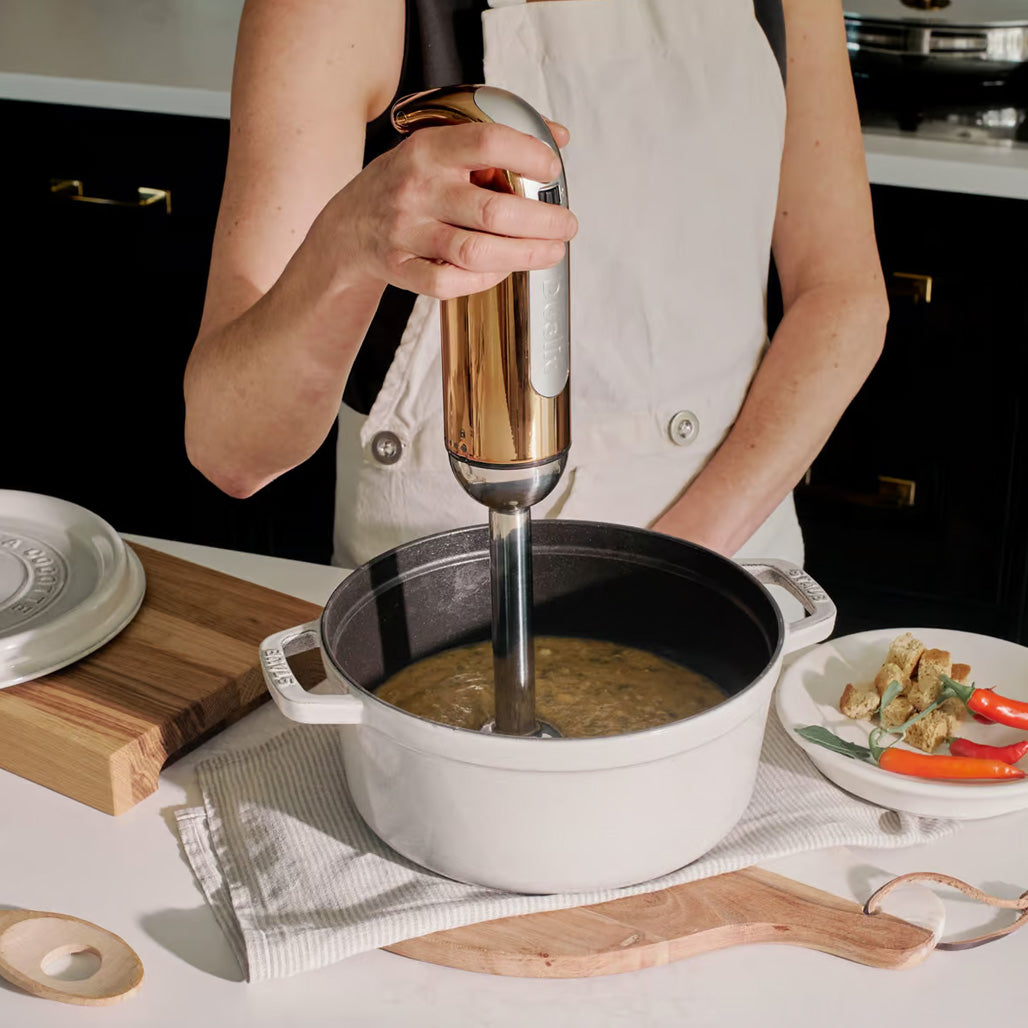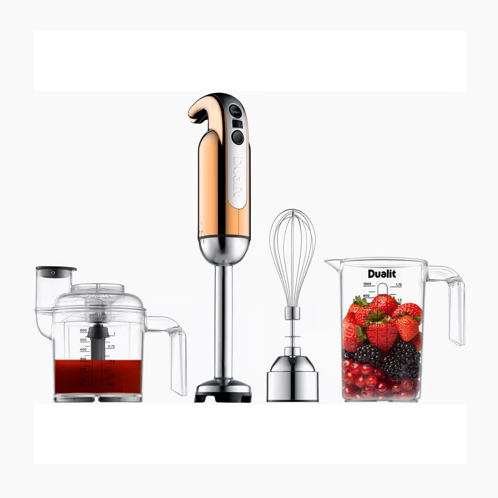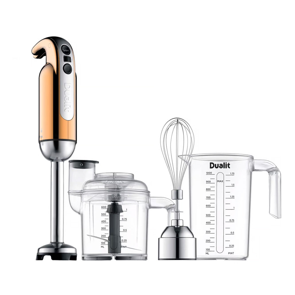 Dualit stavmikser er en lekker utformet stavmikser med smart krommet design. Stavmikseren har en styrke på 700 watt og fleksibel hastighet fra 7.000 til 16.000 runder per minutt. Stavmikseren har også et ekstra turbo-alternativ på 17- 18.000 omdreininger.