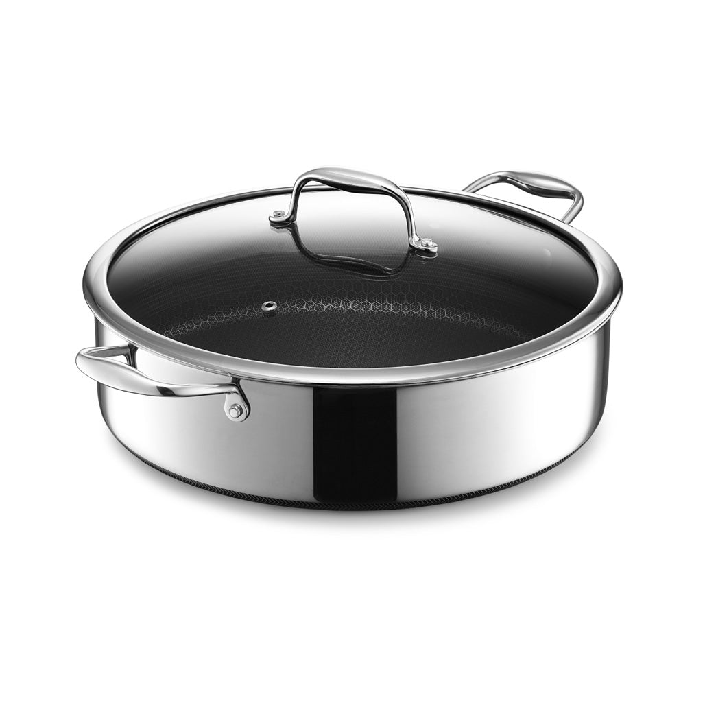 HexClads patenterte hybride stekepanner og kjeler kombinerer ytelsen til rustfritt stål, holdbarheten til støpejern og bekvemmeligheten til nonstick. Hexclad har gjenoppfunnet førsteklasses stekepanne slik at du kan frigjøre potensialet ditt på kjøkkenet.