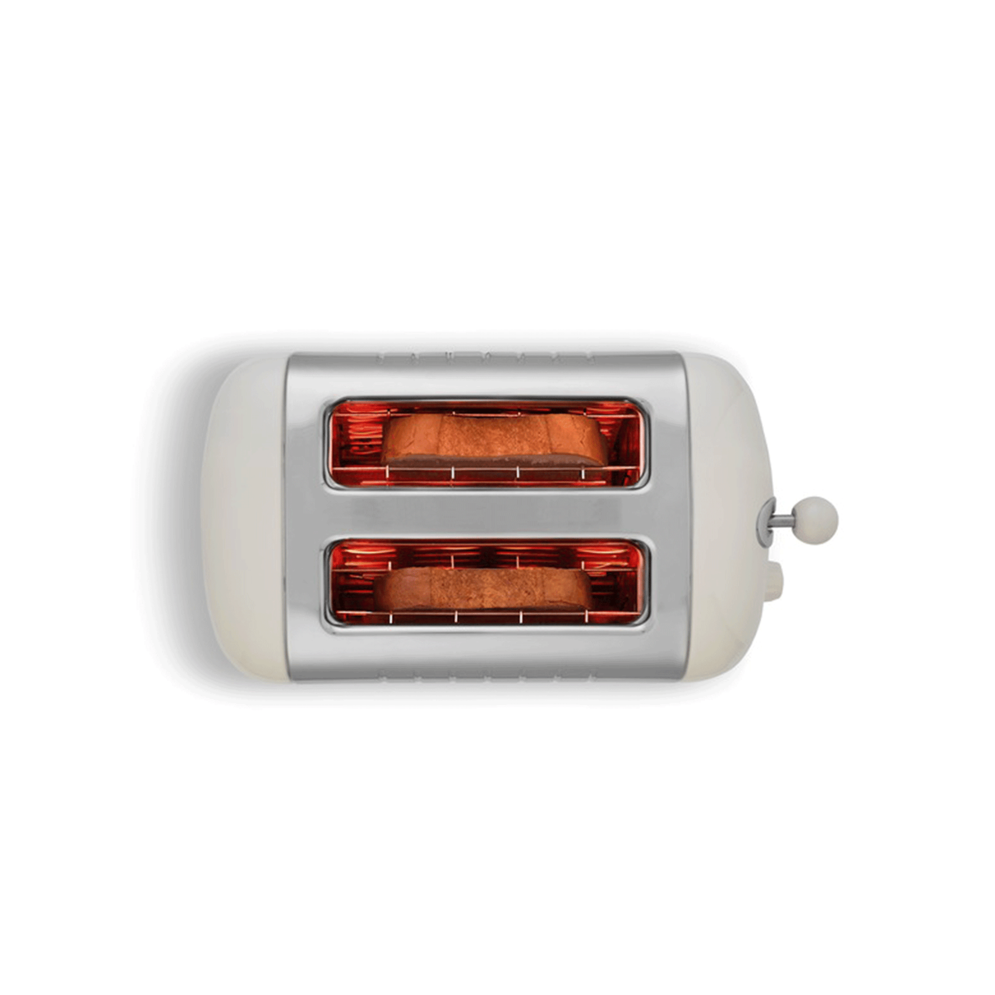 Brødristerne har 28 mm brede slisser og smulebrett som tas lett ut for tømming.