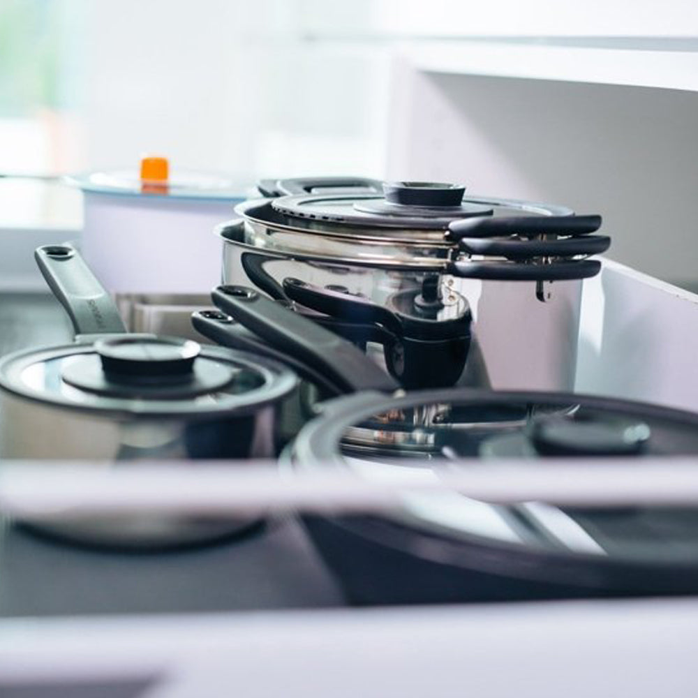 Fiskars Functional Form kasseroller og gryet er laget for hverdagslig matlaging. Laget i 18/10 stainless steel gjør at produktene varmes hurtig og effektivt opp på alle typer platetopper. Bakelitt håndtaket holder seg svalt under bruk, og gir et sikkert grep.