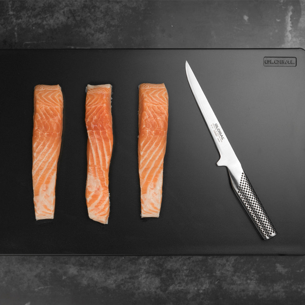 Globals miljøvennlige skjærebrett er laget av brasilianske sukkerrør og er ferdigstilt i Sverige. Skjærebrettet er stort nok til å brukes til alle oppgaver og tar ikke opp lukt eller farge. Det rene designet gjør den enkelt å oppbevare, og tyngden gjør at den ligger trygt på kjøkkenbenken.