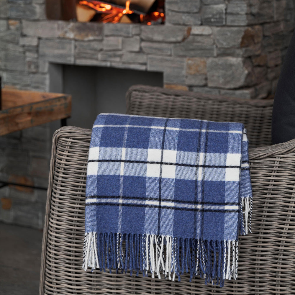 Stort og varmt ullpledd som kan brukes både ute som inne, på soverommet eller på stuen. Den klassiske ruten fås også i sengesett, hotellpute, pysj og pysjbukse. Pleddet i lammeull er mykt og kjennes lett og lunt mot kroppen.